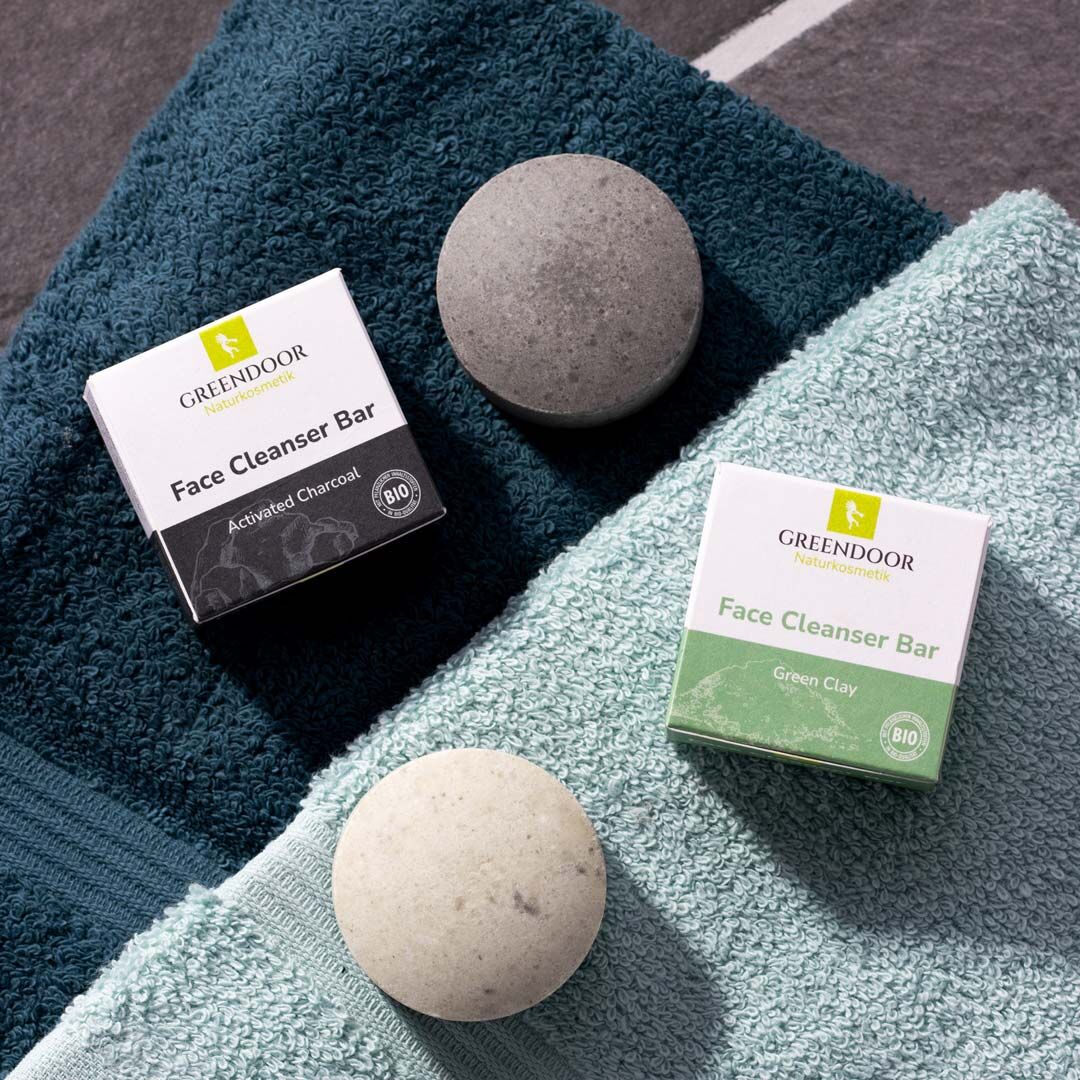 Eine gründliche Gesichtspflege beginnt immer mit der Gesichtsreinigung. GREENDOOR Naturkosmetik bietet Produkte für die Gesichtsreinigung an, die frei von chemischen Tensiden sind und somit sowohl Ihrer Haut als auch der Umwelt gut tun. Unsere Gesichtsreinigungsprodukte bestehen aus natürlichen und vorwiegend biologisch abbaubaren Inhaltsstoffen. Probieren Sie unbedingt unseren Face Cleanser Bar mit Aktivkohle und den Face Cleanser Bar mit grüner Tonerde für eine umweltfreundliche und seifenfreie Gesichtsreinigung.