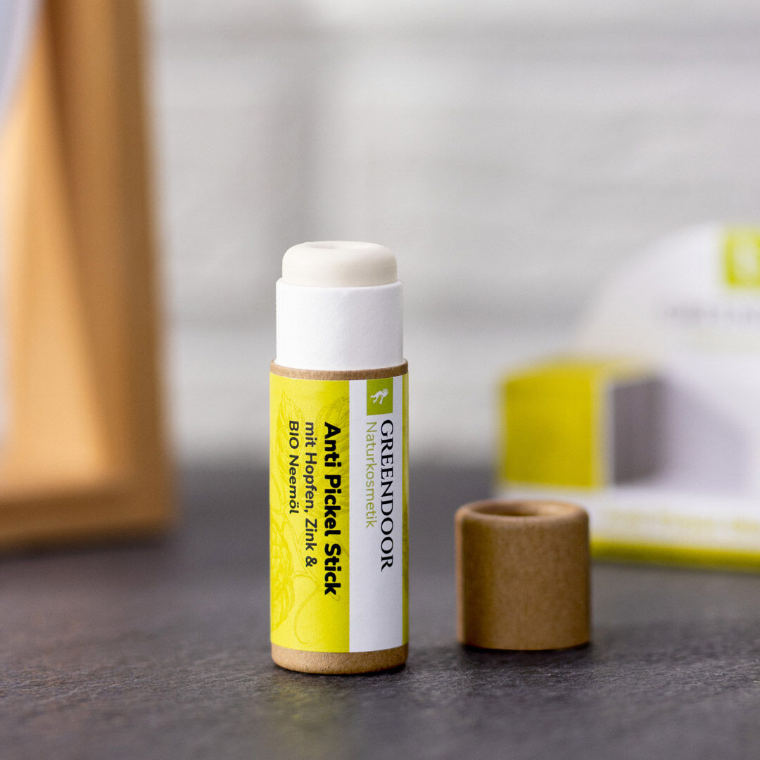 GREENDOOR Zinkbalsam auch als Anti Pickel Creme bekannt, ist eine wirksame Rezeptur ganz ohne Chemie, die Pickel und Rötungen in kürzester Zeit wieder verschwinden lässt. Zinkoxid, kalt gepresstes BIO Neemöl, BIO Hopfenextrakt und BIO Salbeiöl reduzieren Pickel bereits nach 1 Tag wie eine Studie eindrucksvoll bestätigt hat! Der handliche GREENDOOR Anti Pickel Stick lässt sich gut in jeder Tasche mitnehmen, begleitet Sie überall hin und ist somit jederzeit zur Hand.