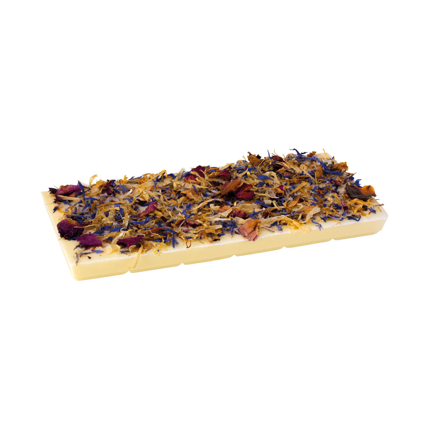 Sie hatten einen harten Tag? Unser Badeschokolade Blumenwiese riecht herrlich blumig und lässt Sie sofort entspannen. Die bunte natürliche Blütendeko aus Kornblumen, Damaszener Rosenblütenblättern und Ringelblumenblüten verleihen der Badeschokolade Blumenwiese ihr hübsches Aussehen. Für ein Vollbad reichen 2-3 Stückchen Schokolade aus. Sie können so bis zu 7 Bäder genießen. Ihre Haut ist nach dem Bad anhaltend weich und geschmeidig und muss nicht mehr eingecremt werden.