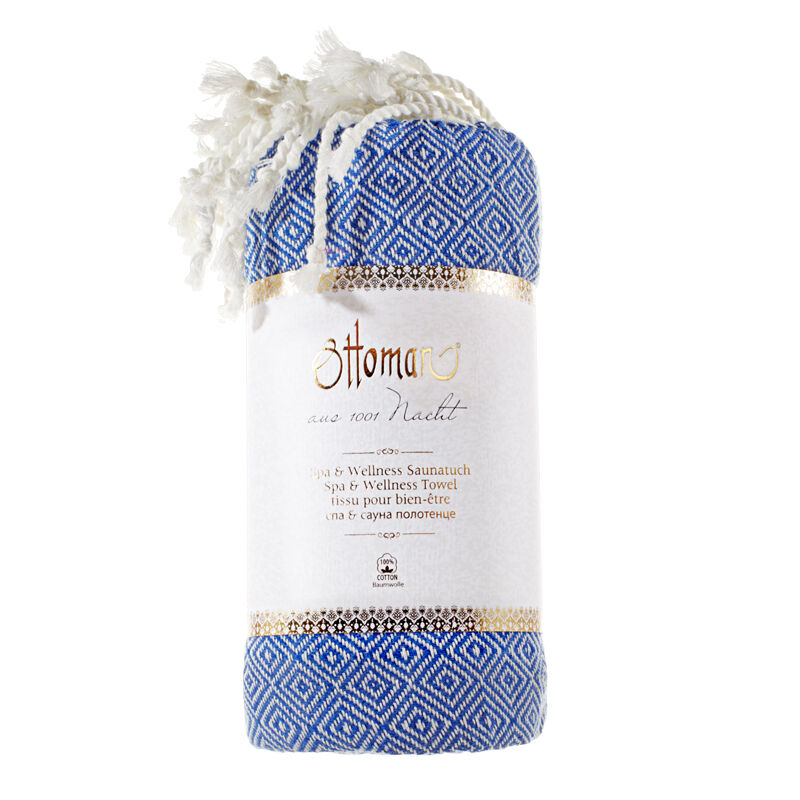 Zusätzlich erhalten Sie ein original Hamam-Tuch 190 x 90 cm. Aufgrund der feinen Baumwollstruktur ist das Hamam Tuch besonders weich, atmungsaktiv und trocknet nach der Anwendung schnell ab. Das hübsche Rautenmuster und das strahlende Blau machen das Tuch zu einem tollen Eyecatcher. Es passt in jede Tasche und ist somit der ideale Reisebegleiter.