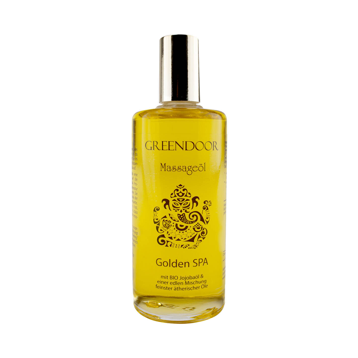 GREENDOOR Massageöl Golden SPA - das elegante Massageöl der besten Massagetempel Asiens. Zu 100% natürlich - ohne Paraffin, ohne Zusatzstoffe, ohne synthetische Düfte. Edles BIO Jojobaöl kombiniert mit zartem Aprikosenkernöl und BIO Brokkolisamenöl sowie einer Mischung verschiedener geheimnisvoller reiner ätherischer Öle ergibt dieses wundervolle edle GREENDOOR Massageöl.