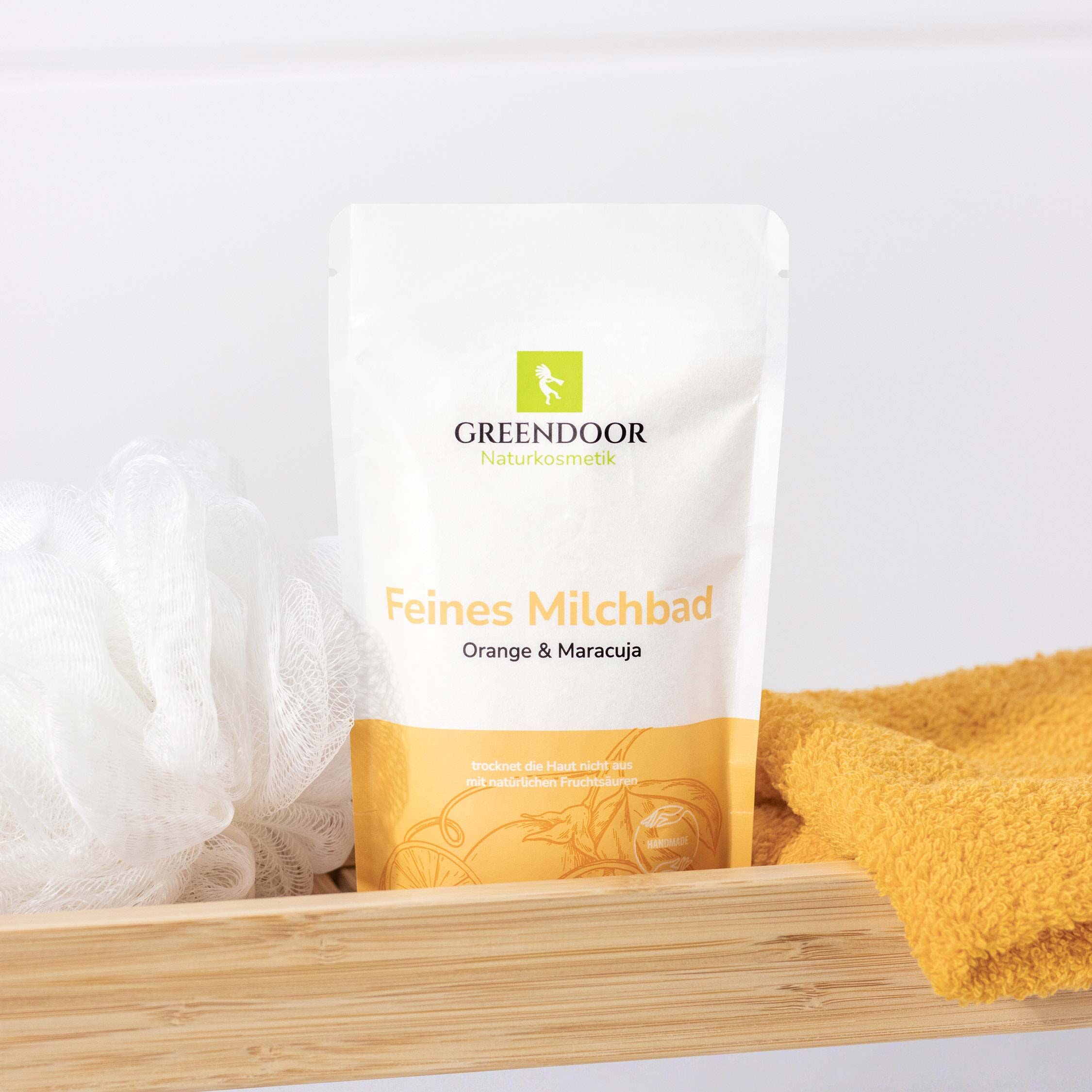 Die Sorte Maracuja Orange ist ein zart nach frischer Maracuja und fruchtiger Orange duftendes Milchbad. Milch, Molke und Meersalz pflegen die Haut samtweich. Tropische Maracuja, konzentrierter Orangensaft und fruchtiges Orangenöl sorgen für ein Bad, das für positive Stimmung sorgt. GREENDOOR Milchbäder sind auch sehr gut für Kinder geeignet, da sie keinerlei austrocknende Zutaten enthalten.