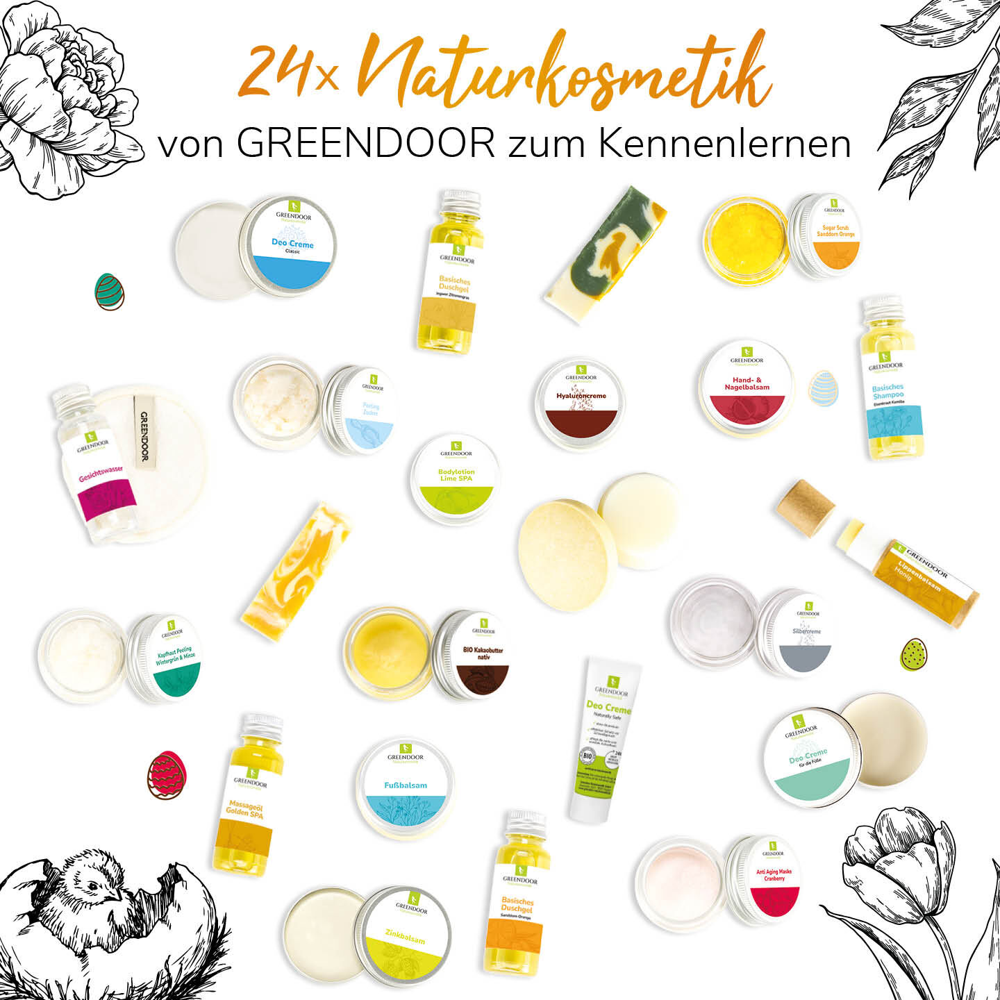 Überraschen Sie Ihren Naturkosmetik-Enthusiasten noch heute mit unserem GREENDOOR Ostern-Probierset! Erleben Sie die Liebe zur Naturkosmetik und hochwertigen Pflegeprodukten – nur solange der Vorrat reicht!
