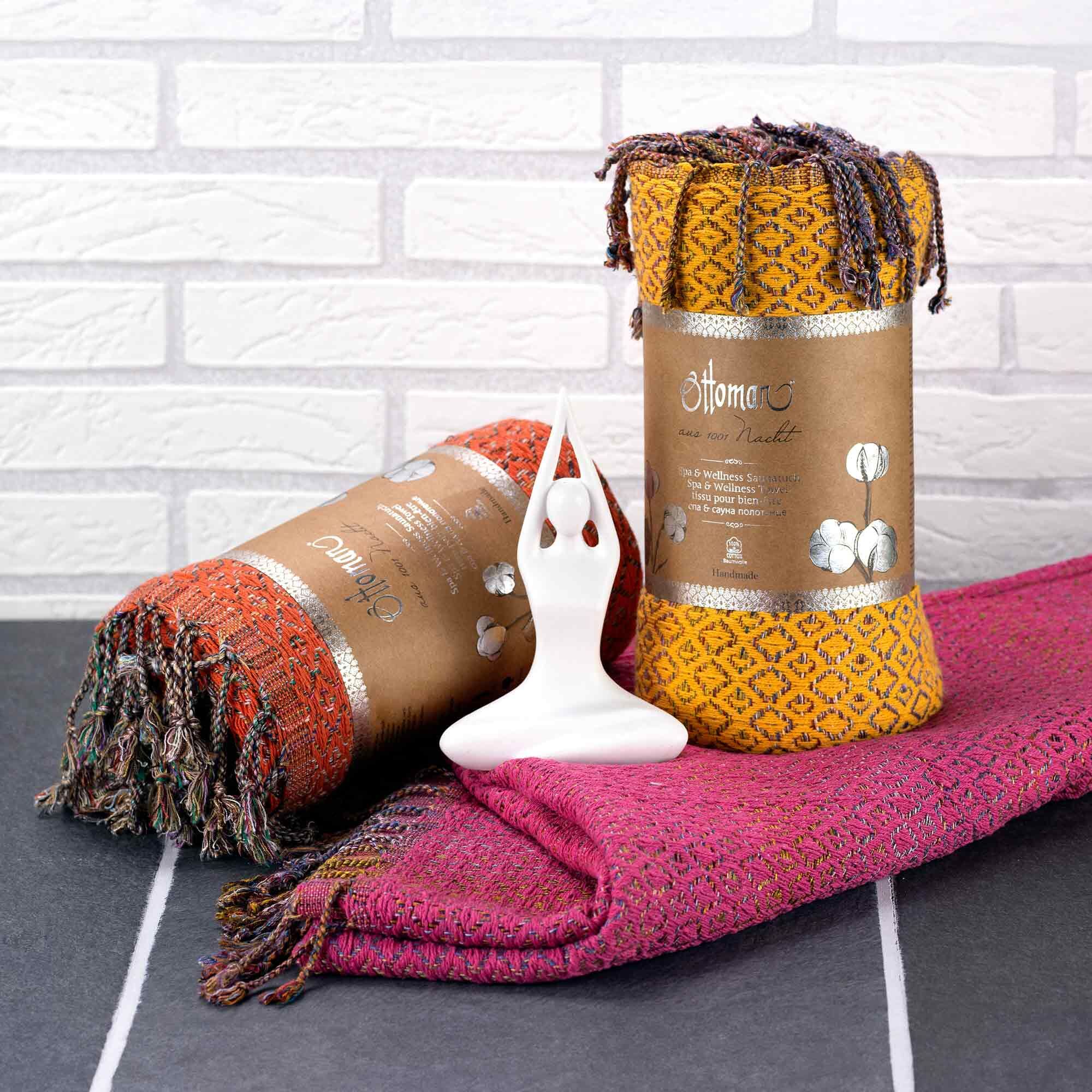 Das Premium Hamam Tuch Jasmin überzeugt durch seine besonders weiche Baumwollfaser und sein edles Webmuster. Traditionell dient es als Lendentuch beim Besuch eines Hamambades. Seine feine Baumwollstruktur ist atmungsaktiv, saugfähig und trocknet schnell ab. Es passt in jede Tasche und ist somit der ideale Reisebegleiter.