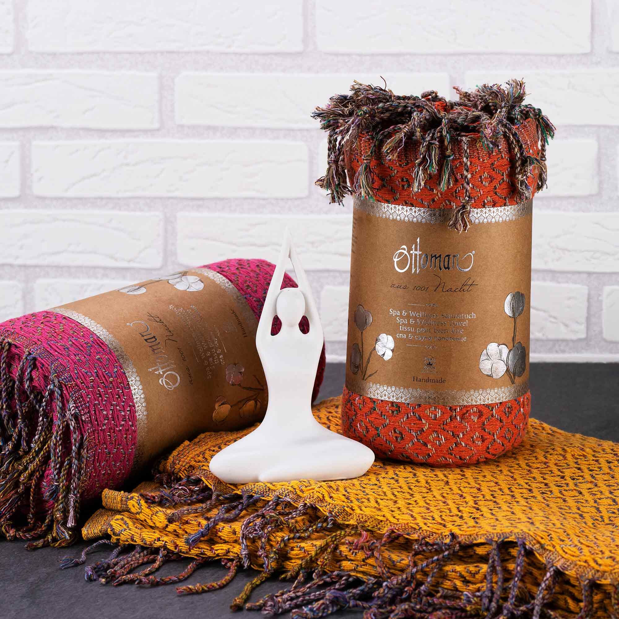 Das Premium Hamam Tuch Jasmin überzeugt durch seine besonders weiche Baumwollfaser und sein edles Webmuster. Traditionell dient es als Lendentuch beim Besuch eines Hamambades. Seine feine Baumwollstruktur ist atmungsaktiv, saugfähig und trocknet schnell ab. Es passt in jede Tasche und ist somit der ideale Reisebegleiter.