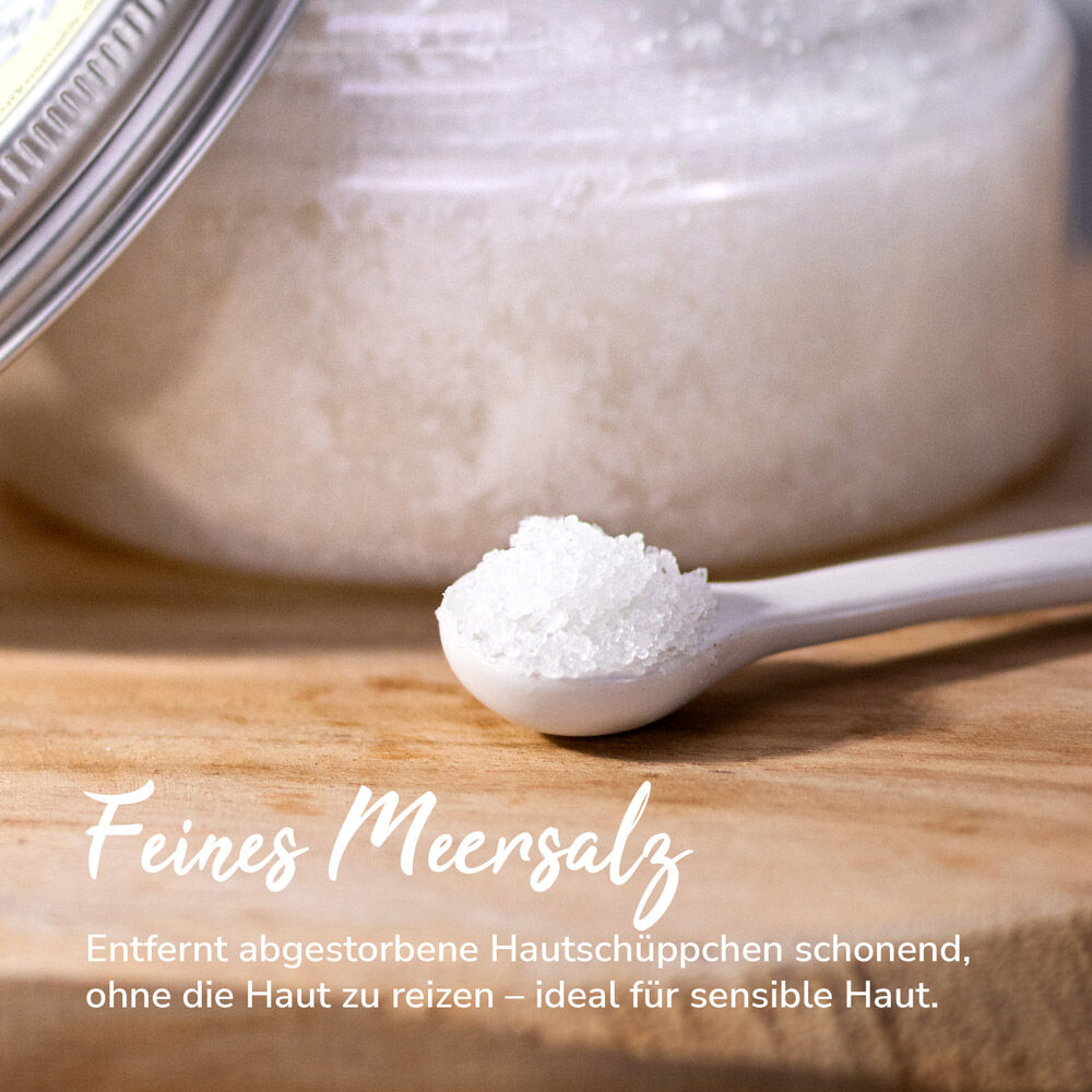 - Hauterneuerung: Sanftes Meersalz peelt die Haut schonend und verbessert die Hautstruktur.