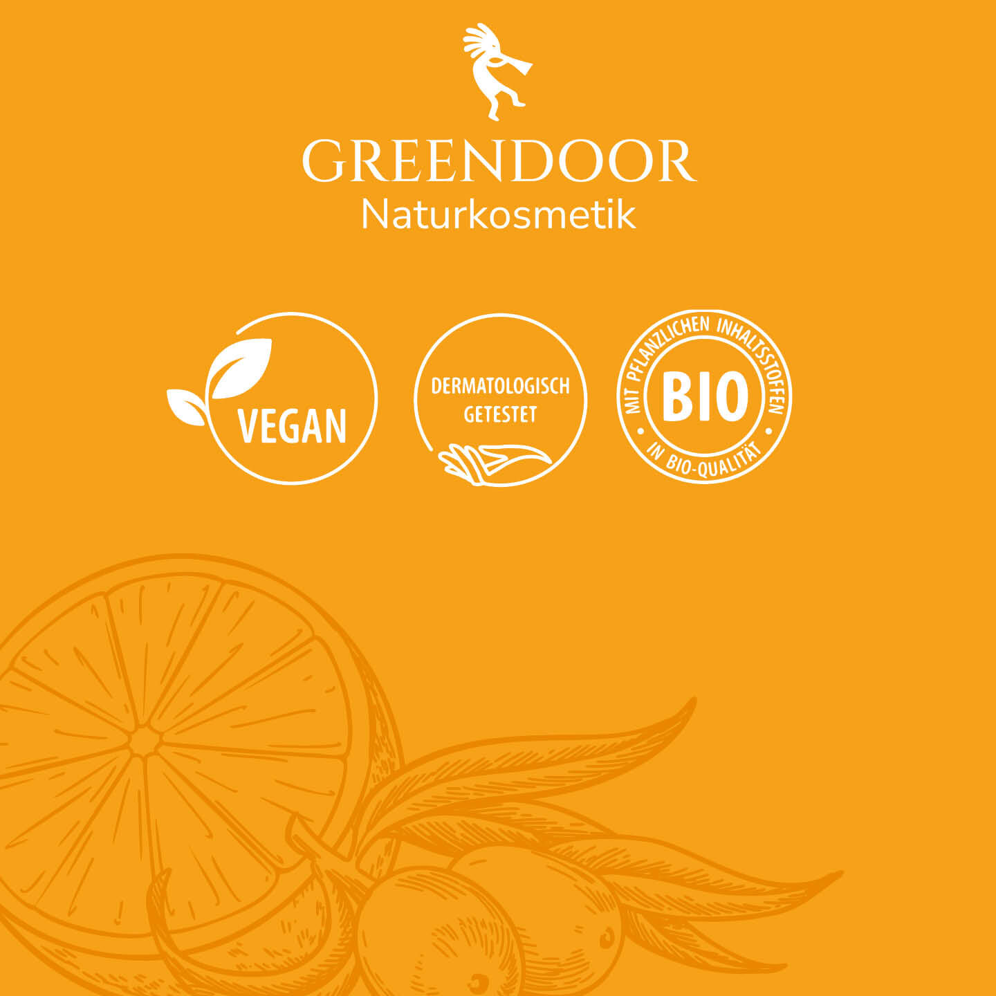 Bio Sanddorn enthält wertvolle Palmitinsäure und Palmitoleinsäure, die beide auch natürliche Bestandteile der menschlichen Haut sind und daher für die menschliche Haut besonders gute Pflegeeigenschaften aufweisen. Daneben enthält Sanddorn natürliches Vitamin E und Carotinoide, die der Haut einen unsichtbaren Schutz verleihen. Aus 100% natürlichen Inhaltsstoffen, ohne Silikone, ohne Parabene, ohne Mineralöle und ohne PEG - wie alle Produkte von GREENDOOR.