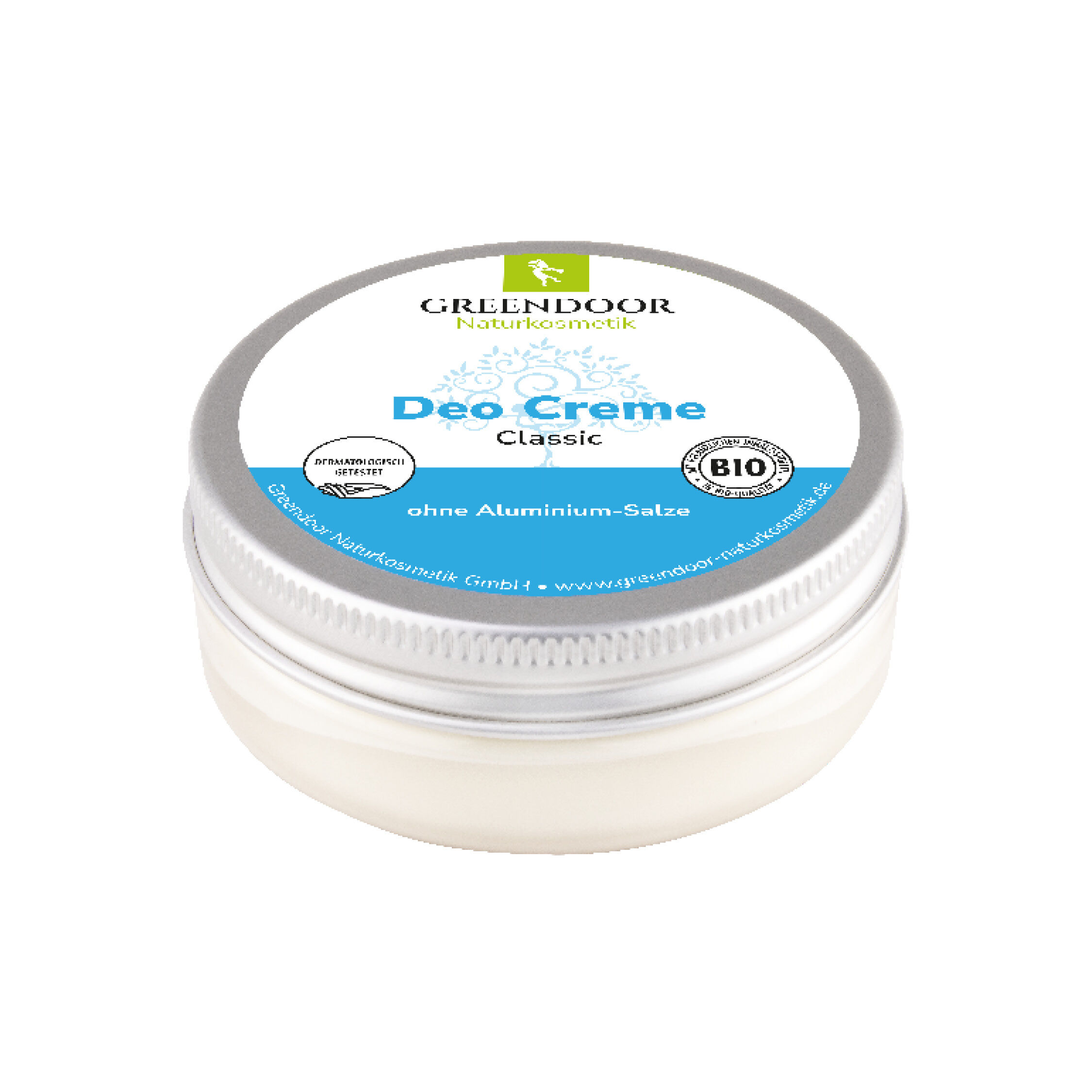Deodorant Creme ohne Aluminiumsalze und ohne Alkohol, dafür mit pflegendem BIO Babassu. Lässt die Haut atmen, absorbiert Schweißgeruch, verklebt nicht die Poren. Ideale Ergänzung zum Body Splash von Greendoor, unserem Körperdeo und Erfrischungsspray.